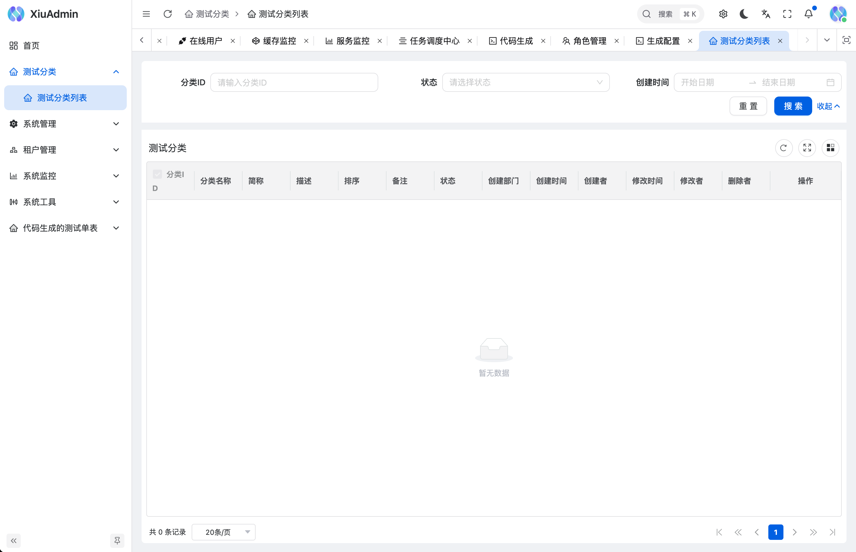 测试分类菜单。如果不是使用热编译启动,请手动重启服务后刷新。